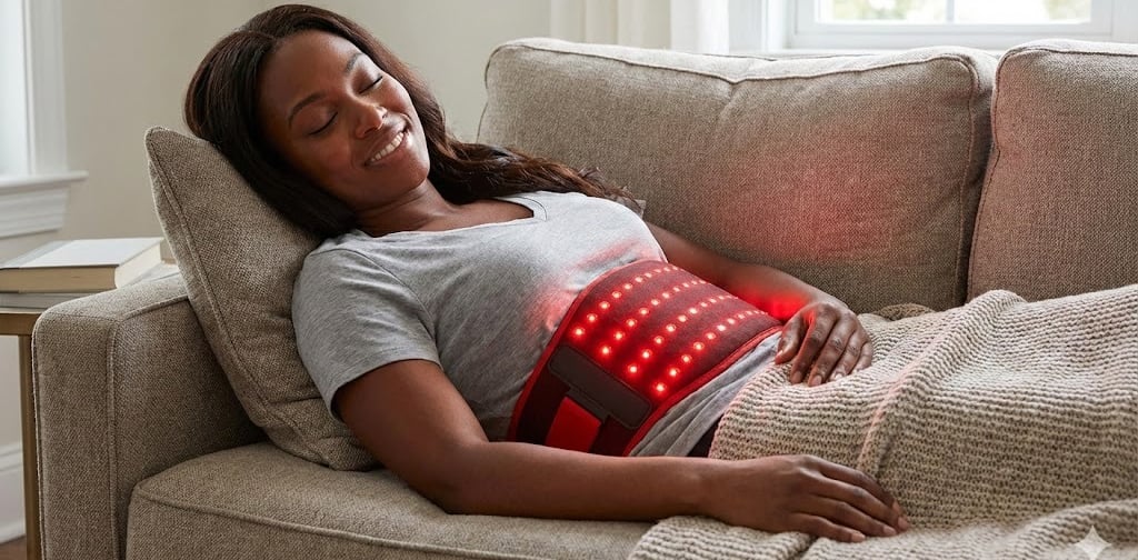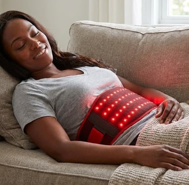 I use a red light therapy belt on my lower abdomen and lower back during the first three days of my period, when cramping is most intense.