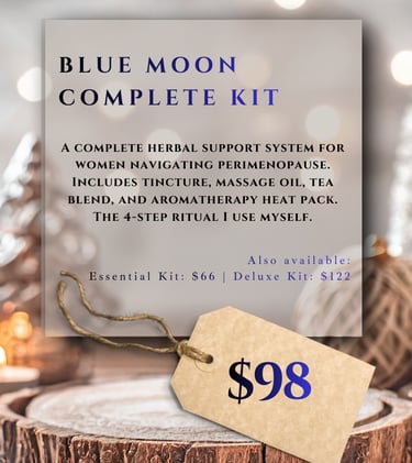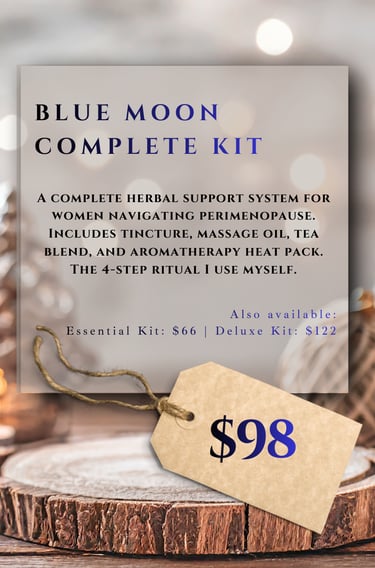 Blue Moon is a holistic system using herbs traditionally utilized to support women during hormonal transitions. It's about honoring your body with plant-based support.